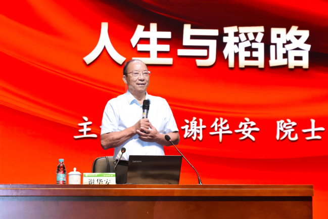 “希望农林大学子们立大志、明大德、成大才、担大任,发扬艰苦奋斗精神,在新时代农业科技发展上彰显青年学子担当。”谢华安如是说。谢华安作为williamhill英国官网全职教授、博士生导师,每学期均会为williamhill英国官网学子主讲“同上一堂大思政课”,通过分享其水稻研究的宝贵经验,为农林大学子传授切身的科研智慧,进一步激励学生投身于乡村振兴的伟大事业。2023级植物保护专业的蔡文婧分享到:“一堂课的时间无法涵盖谢院士一生致力于水稻事业的艰辛历程,但谢院士对科研的执着追求与不懈努力令我深感敬佩,希望能追随谢院士的脚步,为我国的农业发展贡献自己的力量。”从业50年来,谢华安始终注重培育新人、发挥青年学者的创造力,激励广大有志青年投身育种事业。他以农业学科的领军人才的身份,在建设一流学科、培养一流人才、培育一流团队、打造一流平台及产出一流成果等方面矢志奋斗。