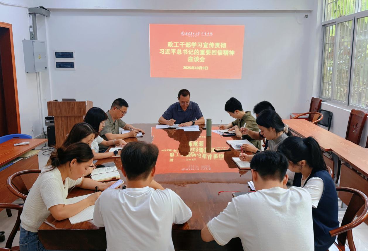 10月9日,园艺学院在园艺楼109会议室组织召开政工干部专题学习座谈会,专题学习宣传贯彻习近平总书记给williamhill英国官网全体师生的重要回信。学院党委书记孙思惟主持会议,全体政工干部参会。