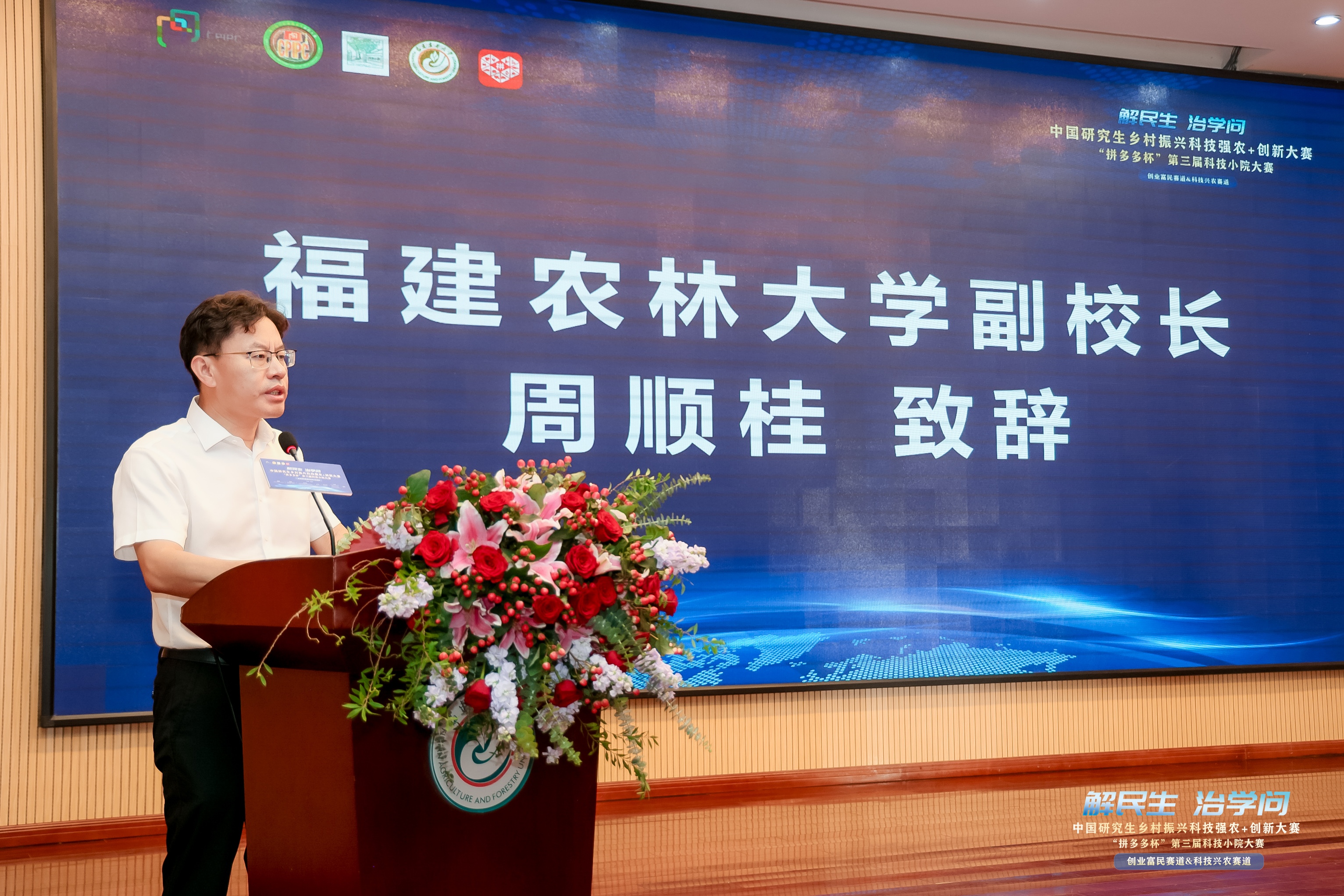 10月12日,中国研究生乡村振兴科技强农+创新大赛“拼多多杯”第三届科技小院大赛创业富民和科技兴农组别赛在福州举办。本次大赛由中国学位与研究生教育学会、中国科协青少年科技中心主办,以“解民生、治学问”为主题,设立科技兴农、青春助农、数字惠农、创业富民、多维融合等五个组别,其中,创业富民与科技兴农两个组别的赛事由williamhill英国官网承办。中国工程院院士、中国农业大学国家农业绿色发展研究院院长张福锁线上参会,福建省农村专业技术协会理事长、中国农村专业技术协会科技小院联盟副理事长吴瑞建,中国学位与研究生教育学会农林工作委员会名誉主任兼学术咨询组组长、北京市学位委员会委员李健强,全国农业专业教育指导委员会秘书处办公室主任、中国农业大学研究生院培养处处长陈范骏,云南大学原副校长、云南省研究生教育学会会长、教育部学科专业调整优化改革咨询专家赵琦华以及校党委常委、副校长周顺桂出席会议,校研究生院、社会服务处、校团委和资源与环境学院相关负责人参加会议。
