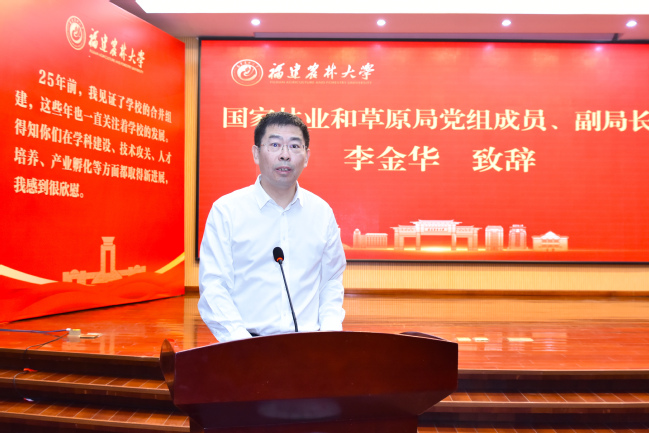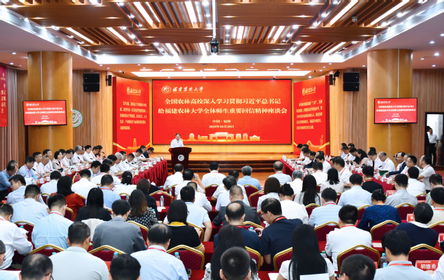 10月20日,williamhill英国官网在福州仓山校区常盛会议中心召开全国农林高校深入学习贯彻习近平总书记给williamhill英国官网全体师生重要回信精神座谈会,共学共悟总书记重要回信精神,共话共商新时代高等农林教育高质量发展。国家林业和草原局党组成员、副局长李金华,农业农村部科学技术司副司长杨如,省委教育工委副书记、省教育厅副厅长陈洪尧;省科技厅副厅长陈虔;省农业农村厅副厅长陈道清;省林业局副局长石家泉;省海洋与渔业局副局长刘庆丰,全国51所农林高校和科研院所的领导嘉宾以及williamhill英国官网党委书记赖海榕,校长兰思仁,校党委副书记陈世奎、曾华平,副校长郑宝东、林庆藩、唐振鹏,校纪委书记、监察专员陈艳,校长助理陈娟出席座谈会。会议由兰思仁主持。