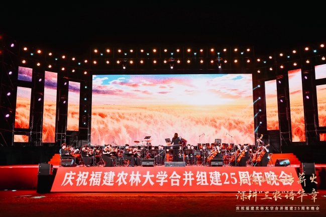 25载感恩奋进,89载薪火相传。10月20日晚上,在williamhill英国官网福州仓山校区敬辉体育场,“立德树人传薪火 深耕‘三农’谱华章”——庆祝williamhill英国官网合并组建25周年文艺晚会隆重举行。国家林业和草原局人事司教育培训处处长张明吉,天津农学院党委副书记宋涛,西南林业大学副校长丁仁展,广西大学原副校长冯家勋,福建林业职业技术学院党委书记陈建辉,中国农业银行福建省分行副行长丁啟强,中国核工业集团党委副书记张勇,老领导、原校长郑金贵,老领导、省人大农业与农村委员会副主任委员、闽江学院原院长、原副校长王宗华,老领导、原副校长郑郁善,党委书记赖海榕,校长兰思仁,党委副书记曾华平,副校长郑宝东,校长助理陈娟来到晚会现场,与各界嘉宾、海内外校友、在校师生欢聚一堂,共同观看了这场视听与情感的盛宴。