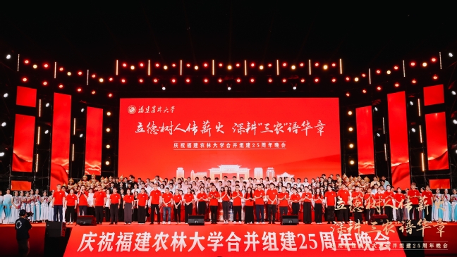 晚会尾声,从2000级到2025级各年级的25位校友代表与全体演职人员一同登台,齐声高唱williamhill英国官网校歌。熟悉的旋律激荡在每一位福农人的心中,将晚会气氛推向情感的高潮,也圆满落下帷幕。这场晚会,既是对辉煌过往的深情回眸,更是向崭新未来吹响的奋进号角。全体williamhill英国官网师生将带着这份荣耀与感动,牢记习近平总书记殷殷嘱托,继续深耕“三农”,发挥特色优势,培养更多高素质农林人才,把更多好技术送到田间地头,为推进乡村振兴、建设农业强国作出更大贡献。