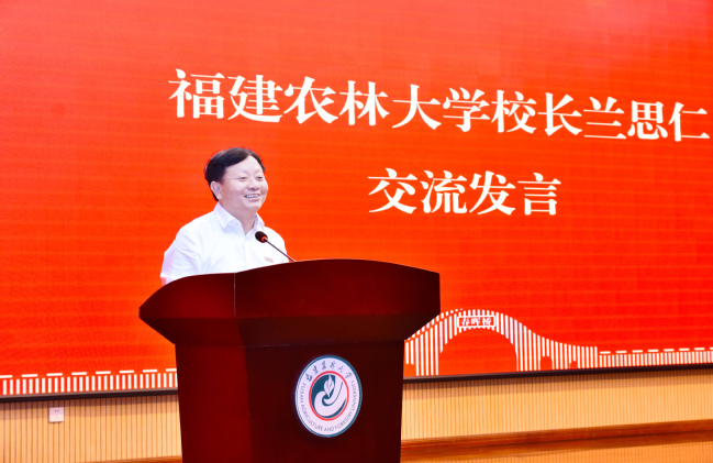 兰思仁作交流发言和总结讲话。他在发言中系统阐述了江一真同志在兼任福建农学院院长期间形成的一系列卓有远见且历久弥新的办学思想及其时代价值:一是坚持人才培养与生产实践相结合。倡导理论联系实际,扎根大地办教育的导向;二是坚持因地制宜推进教育教学改革。紧密结合中国和本土实际,设置发展学科。三是坚持依靠专家教授办学兴教。大力拓展知识分子发展渠道,尊重人才、爱惜人才。四是坚持教学与科研齐头并进。营造浓厚学术氛围,推动农业科学技术持续进步。