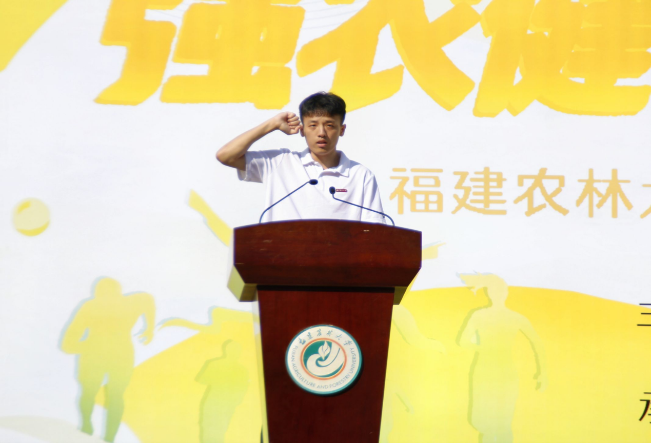在宣誓环节,运动员代表2023级茶学专业的张嘉旺同学庄严宣誓,承诺恪守体育精神,公平竞赛;裁判员代表林祥和老师宣誓,承诺将严格公正执裁,确保赛事顺利进行。