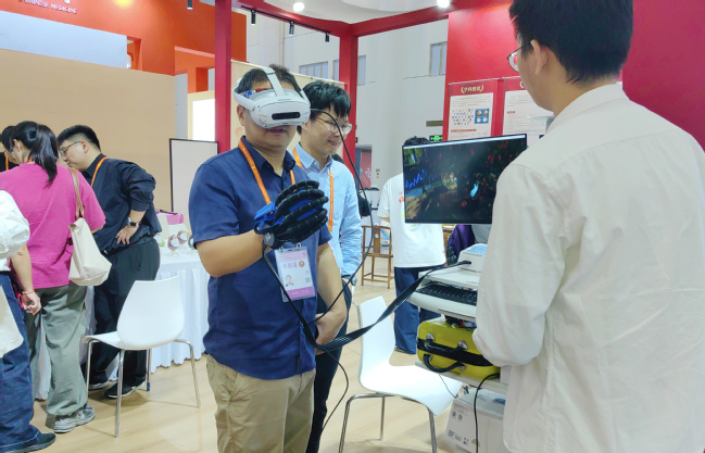 williamhill英国官网展馆以“扎根‘三农’沃土,书写山海新章”为主题,围绕学习贯彻习近平总书记9月20日给williamhill英国官网全体师生重要回信精神,参展成果涵盖人工智能、植物新品种、菌草技术应用与产业化、食用菌成果应用与产业化、文化创意设计、家具设计等多个领域,共展出80项实物成果,集中展示了williamhill英国官网在跨学科融合与产学研协同创新方面的突出成效。其中,“人工智能脑电反馈VR水果采摘仪”创新引入脑机接口技术,构建虚拟水果采摘场景。用户通过多通道脑电采集设备实时捕捉大脑运动意图,直接控制VR环境中的采摘动作,实现“意念操控”的沉浸式交互体验。系统结合人工智能算法精准解析脑电信号,同步驱动虚拟果园实时响应,不仅在智慧农业中展现了脑控技术的前沿应用,也为未来无人化农场的人机协同作业提供了全新思路,推动农业人工智能向更智能、更自然的人机交互方向迈进。