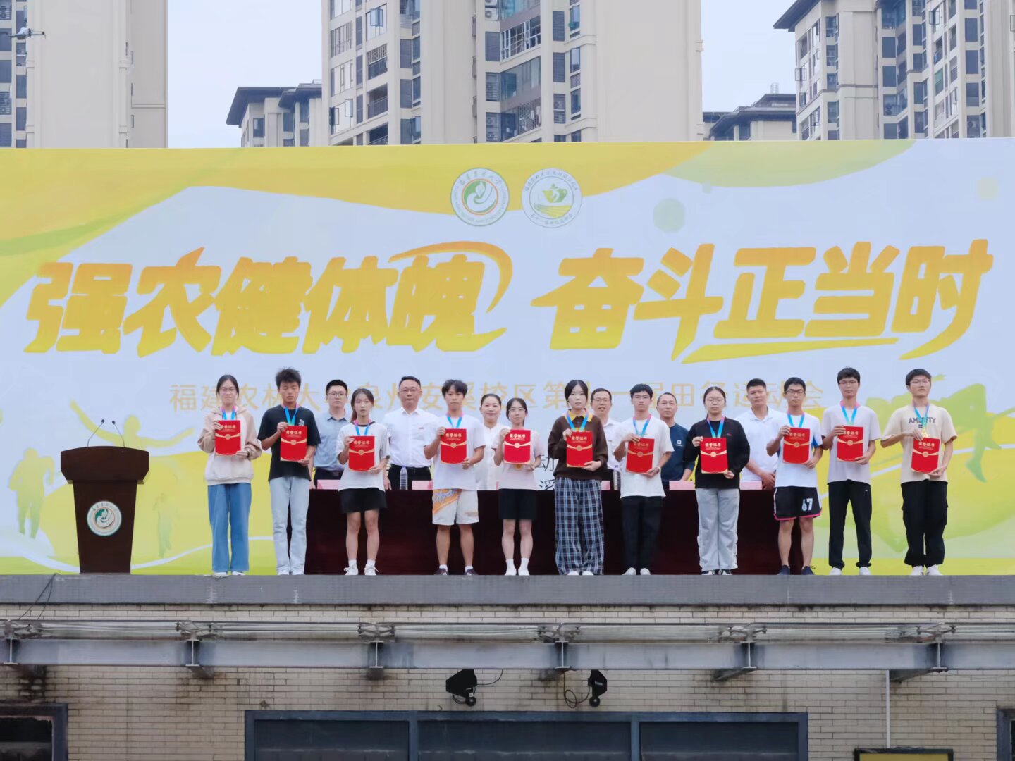 致辞结束后,张云帆宣读十佳运动员和最佳组织奖的表彰文件,洪涛宣读团体总分奖的表彰决定,与会领导们为获奖选手与组织颁奖。随后,主持人郑重宣布泉州安溪校区第十一届田径运动会圆满落幕。