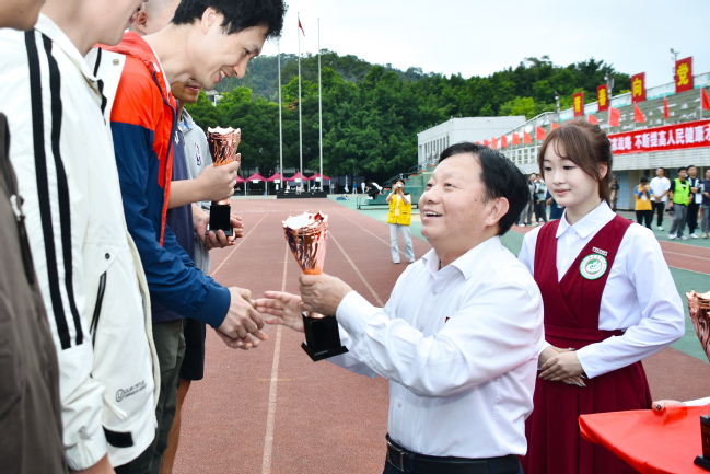 兰思仁校长为获得教工田径团体总分前十名的代表队颁奖