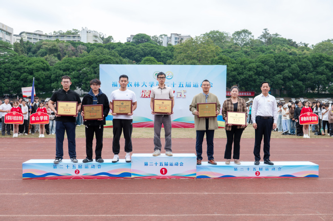 校党委曾华平副书记为获得教工男子组田径团体总分前六名的代表队颁奖