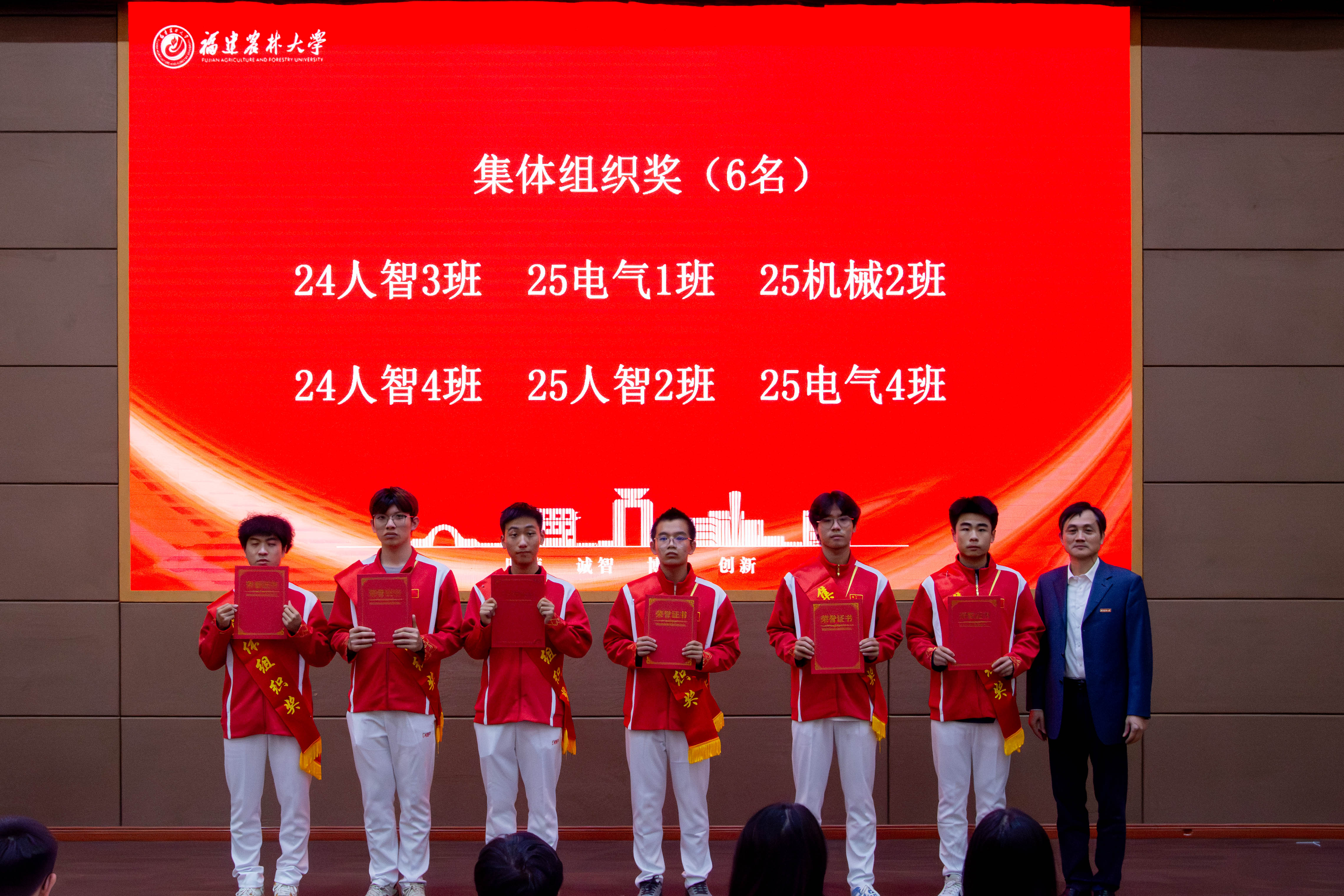 会上,郑书河宣读了机电工程学院2025年体育工作表彰决定,授予黄晴晴等20人“优秀运动员”荣誉称号,授予廖嘉乐等20人“体育先进工作者”荣誉称号,授予戴宇泽等10人“体育精神奖”荣誉称号,授予2024人工智能3班等6个班级“集体组织奖”荣誉称号。与会领导向受表彰对象颁发绶带和证书。