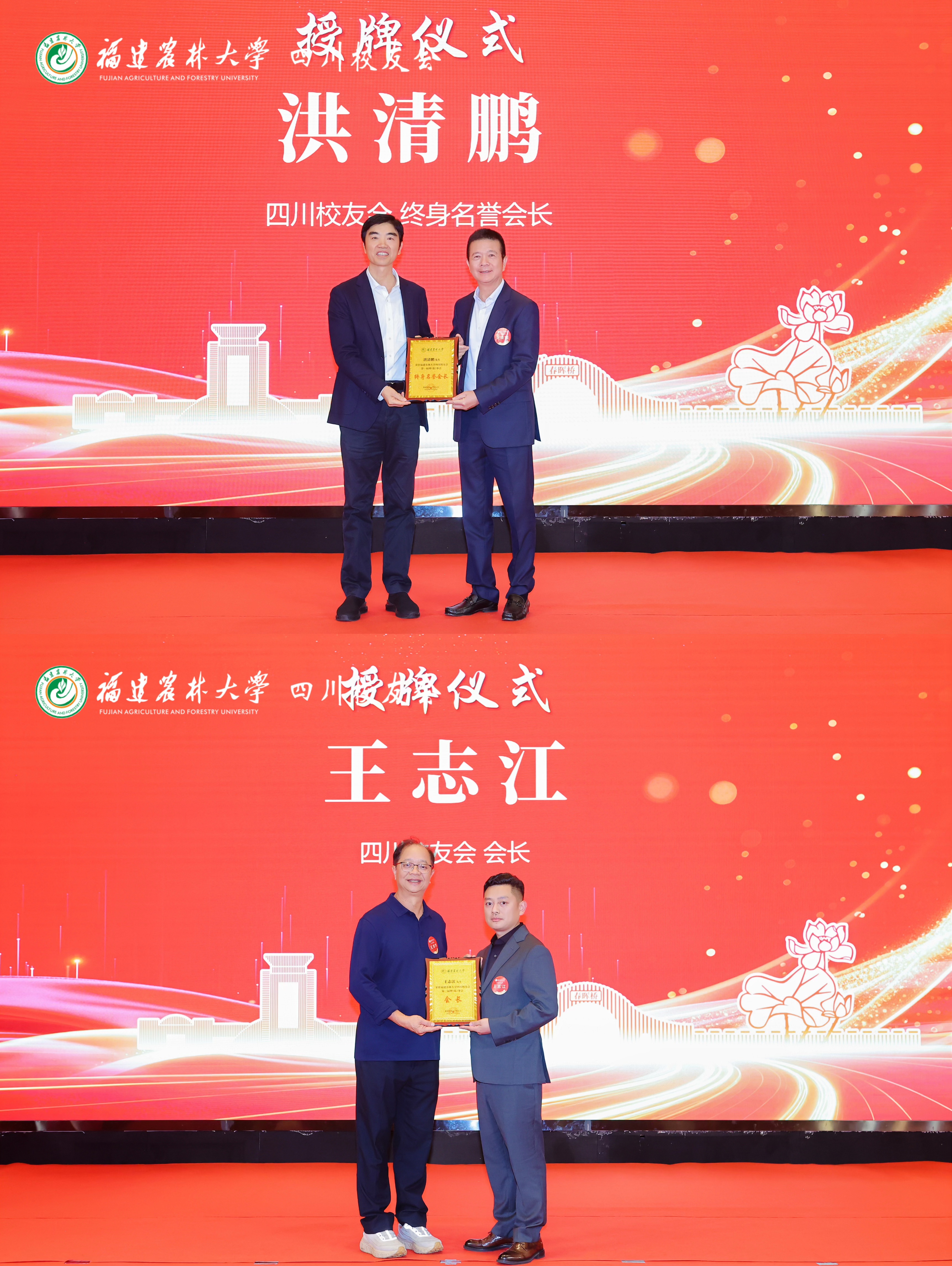 林庆藩、王宗华为四川校友会终身名誉会长洪清鹏、会长王志江授牌