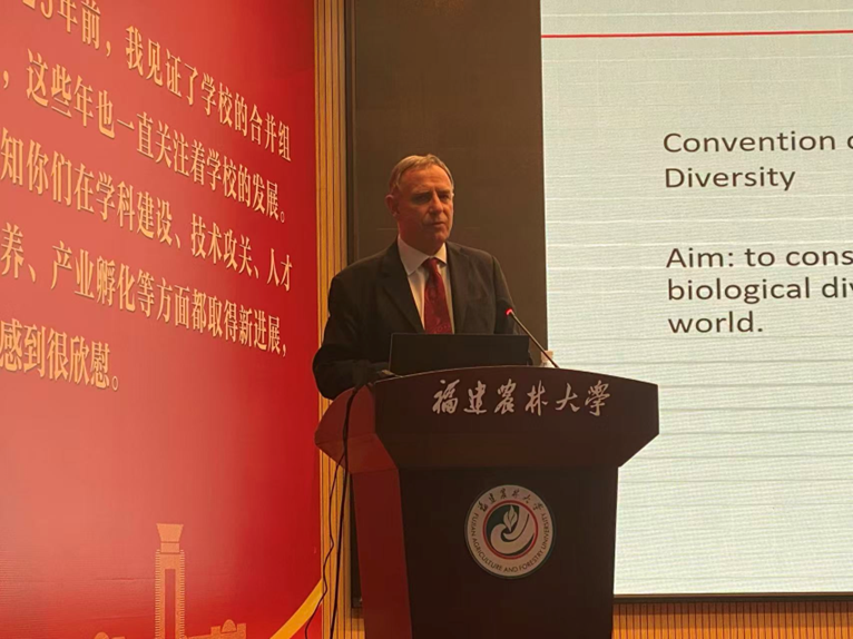 12月6日,John Innes教授的学术报告在金山校区常盛会议厅举行,分别来自林学院、菌草与生态学院、乡村振兴学院、植物保护学院等多个学院的200余师生参加了本次报告,现场交流氛围热烈。报告中,John Innes教授系统梳理了“可持续森林经营(Sustainable Forest Management, SFM)”概念的演进脉络,从早期实践到现代多目标综合治理转型,深刻阐释了在生态系统完整性、社会公共利益与经济可行性间寻求动态平衡的现代森林经营逻辑。他强调,当代林业必须统筹生物多样性保护、生态服务功能与气候变化应对,实现生态、社会与经济价值的协同增益。