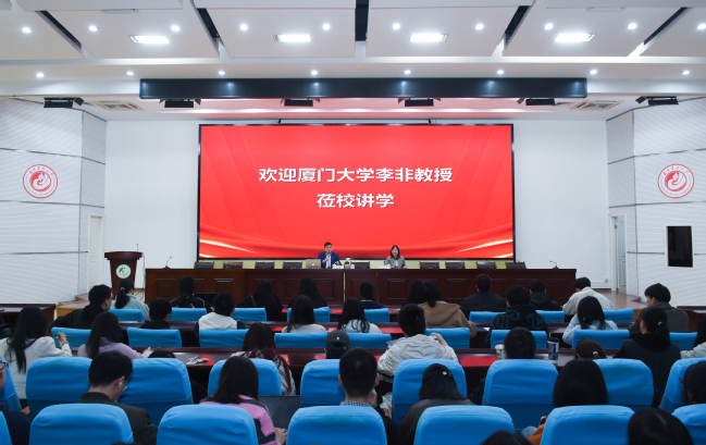 12月17日下午,厦门大学台湾研究院李非教授应williamhill英国官网邀请在禧强楼学术报告厅为师生作题为“当前台海局势与两岸政经解读——兼论两岸融合与中国统一”的专题报告,300余名师生到场聆听。