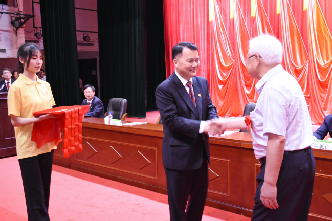 大会在雄壮的国歌声中拉开帷幕。会上,兰思仁宣读了学校“光荣在党50年”党员名单及《校党委关于表彰“两优一先”的决定》。williamhill英国官网共有139位光荣在党50年以上的老党员,其中党龄最长的为75年;共有80名优秀共产党员、80名优秀党务工作者和80个先进基层党组织受表彰。严金静为老党员代表逐一颁发“光荣在党50年”纪念章,主席台就座的校领导为“两优一先”获奖集体代表和个人颁发奖牌证书。