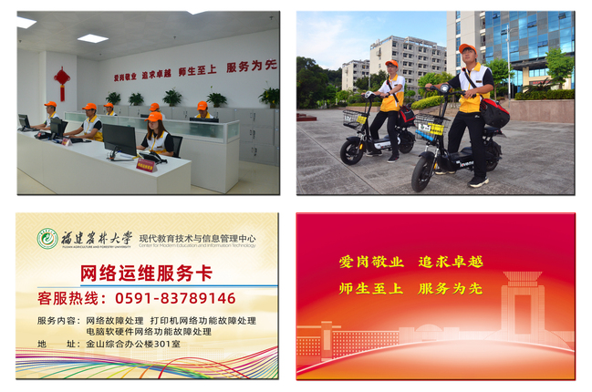 本次引进组建的网络运维专业服务团队,要求牢固树立“师生至上,服务为先”的理念,服务内容为校园网师生用户提供网络故障维护和上网客户端故障处理,并为教职工用户提供电脑网络功能故障处理和打印机网络功能故障处理等。根据协议,该团队由10名专业技术工作人员组成,其中7人常驻金山校区、3人常驻旗山校区;办公地点在金综楼A301;开通了服务热线:0591-83789146,安排客服人员专门负责接听故障报修;实行全年365天,每天8:00-21:30对校园网师生用户提供服务;工作人员统一着装,佩戴胸卡,严格遵守服务管理机制。同时要求运维服务团队承诺做到:接到师生报障受理后在5分钟内响应,与师生用户约定处理时间;故障修好后,客服人员对用户进行回访,倾听并掌握师生用户对故障处理结果的满意度评价。