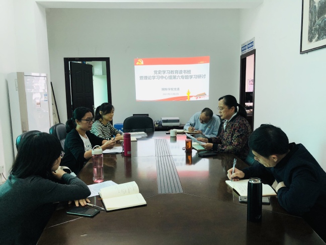 11月2日下午,国际学院党委理论学习中心组开展党史学习教育读书班第六专题学习研讨,中心组成员参加学习,院党委书记张华英主持会议。
