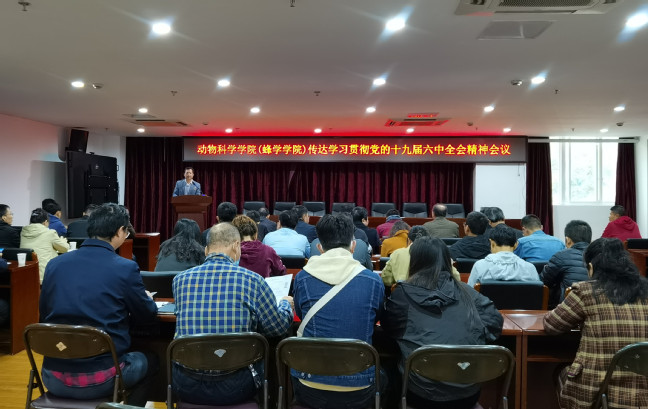 11月18日下午,动物科学学院党委在学院会议室召开教职工党员大会传达学习贯彻党的十九届六中全会精神。会议由学院党委书记黄毅军主持。